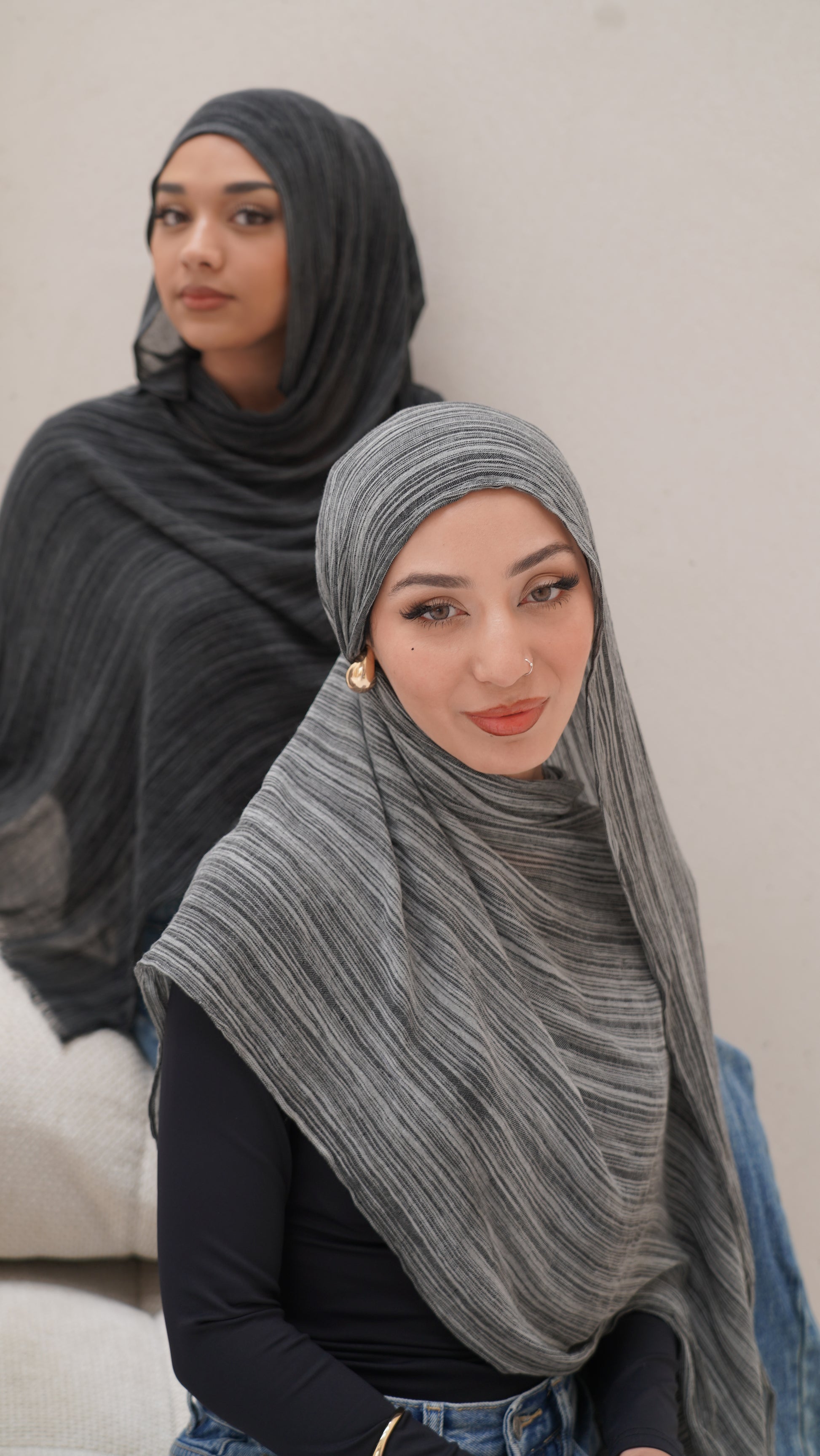 Finished with delicate frayed edging along the short sides, each hijab balances modern texture with timeless appeal. Its versatile structure allows it to style beautifully whether wrapped, draped, or layered, maintaining its elegant shape throughout the day.